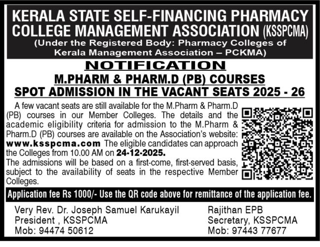 M.Pharm & Pharm.D (PB) Courses Spot Admission